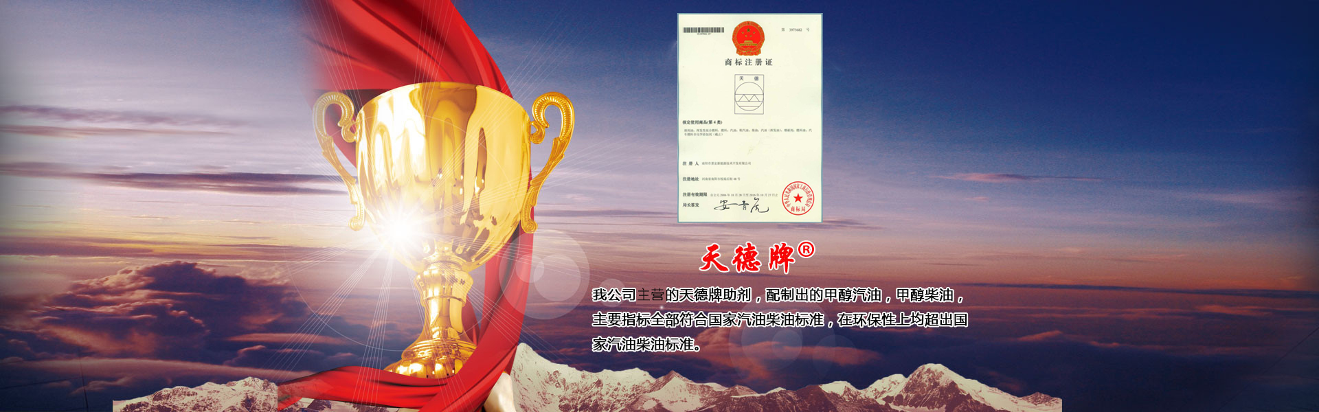 本公司主要產(chǎn)品有甲醇汽油添加劑、甲醇柴油添加劑、車用復(fù)合柴油添加劑、甲醇燃料油添加劑以及雙燃料控制器和油罐除水劑六大系列九種產(chǎn)品,具有廣闊的市場空間和經(jīng)濟效益。其中添加劑系列已在國家商標(biāo)局注冊為“天德牌”,天德牌問世二十多年來,在保證產(chǎn)品質(zhì)量的同時,給廣大客戶帶來了可觀的經(jīng)濟利益,得到廣大油品行業(yè)用戶的一致好評…… 了解更多+